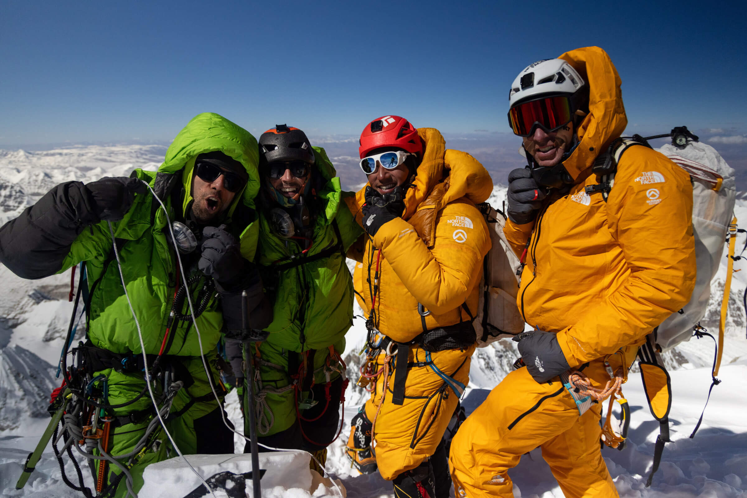 “Alpenglow’s Topo Mena and his climbing partner, Roberto “Tico” Morales, led the fixing team up through the Hornbein Couloir, reaching the summit at 12:45 p.m. “Only about five people have ever climbed the Japanese Couloir into the Hornbein, and we had twelve on the summit,” says Morrison.”